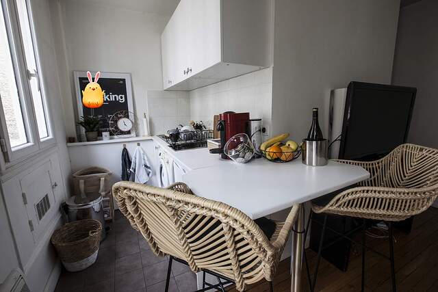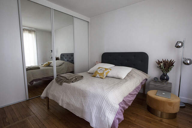 The bow windows offer a view of Rue Clément Marot. There is a separate storage room (4 m²) in the basement.
