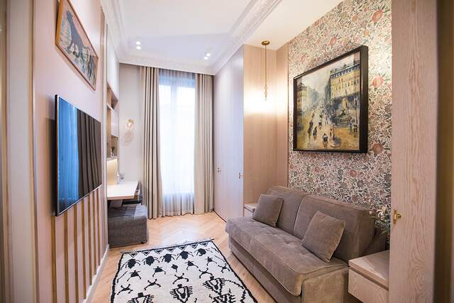 Location. The apartment offers its residents peace and comfort. It is only 400 meters from one of the most beautiful parks in Paris, Parc Monceau. Within walking distance are the Arc de Triomphe, the Champs-Élysées, and the famous Montmartre. All the necessary amenities for a comfortable life are located near the building.