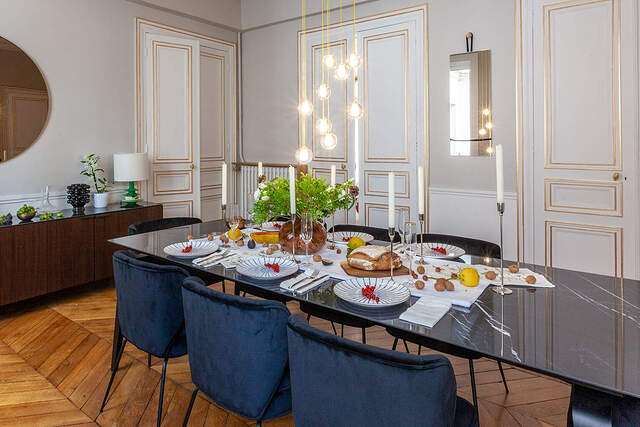 The property comprises a spacious living room, a dining area, a fully equipped modern kitchen, four comfortable bedrooms, three stylish bathrooms, and a welcoming hallway. It's an excellent choice for families or those seeking generous living space in Paris.