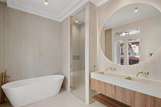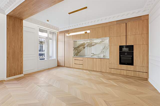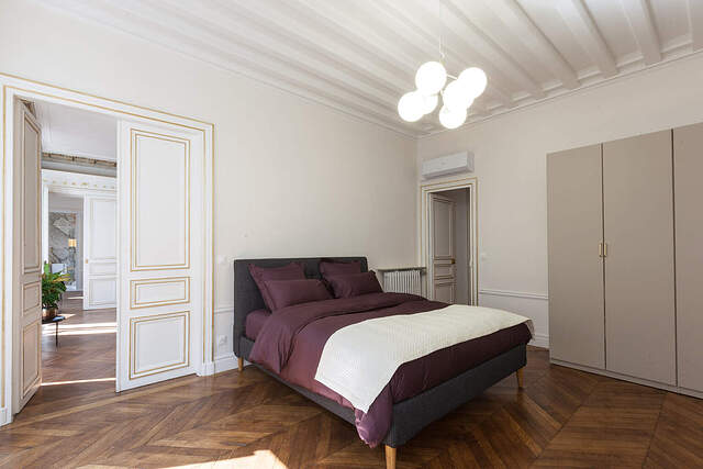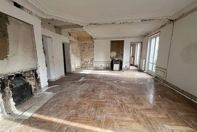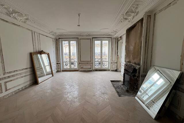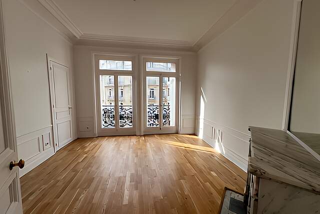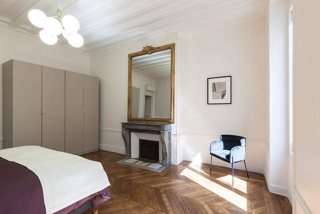 Spanning 200 square meters and situated on the 1st French floor of the building, this residence features elegant parquet flooring, high windows, and a bright, light-filled interior.