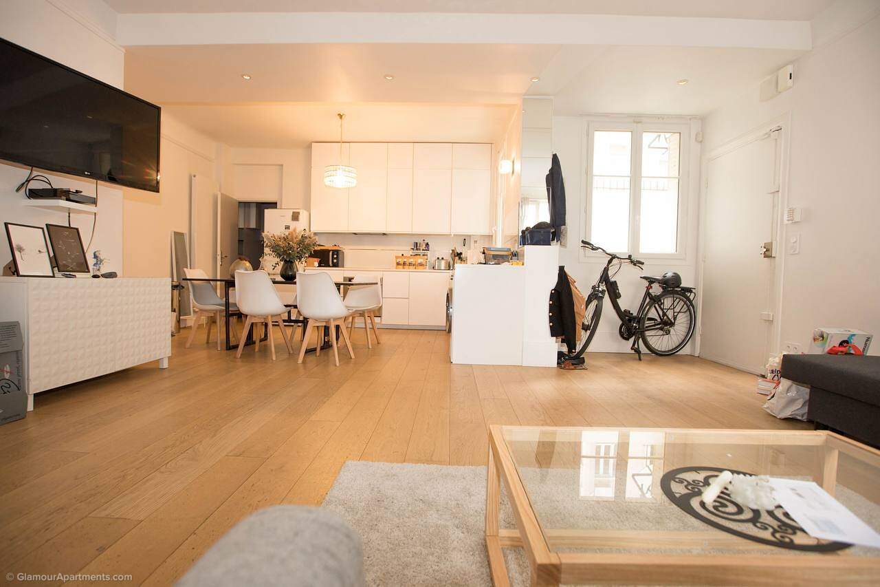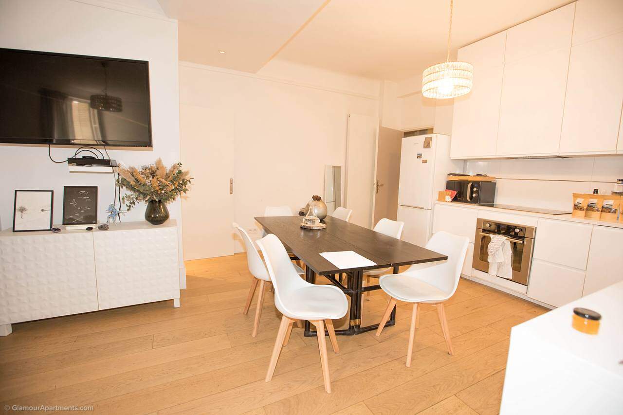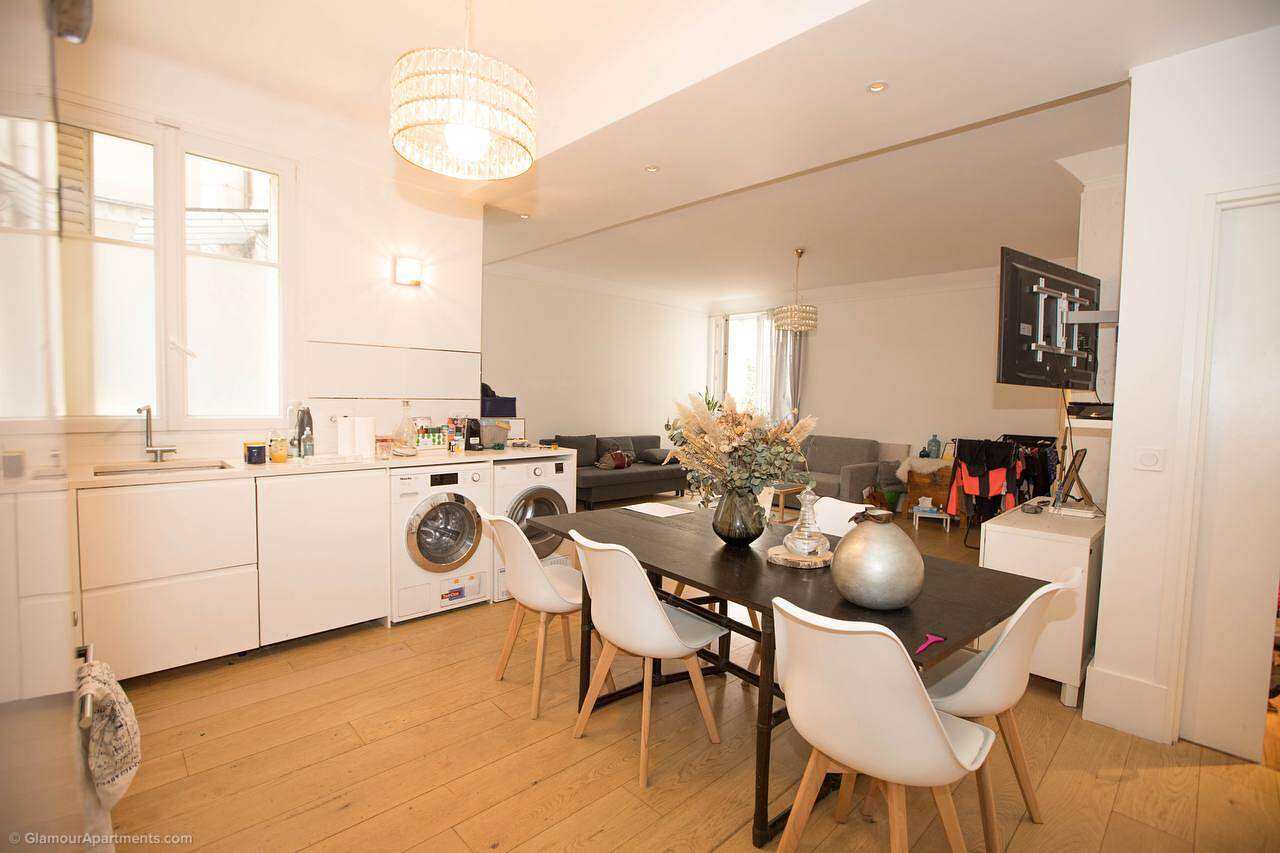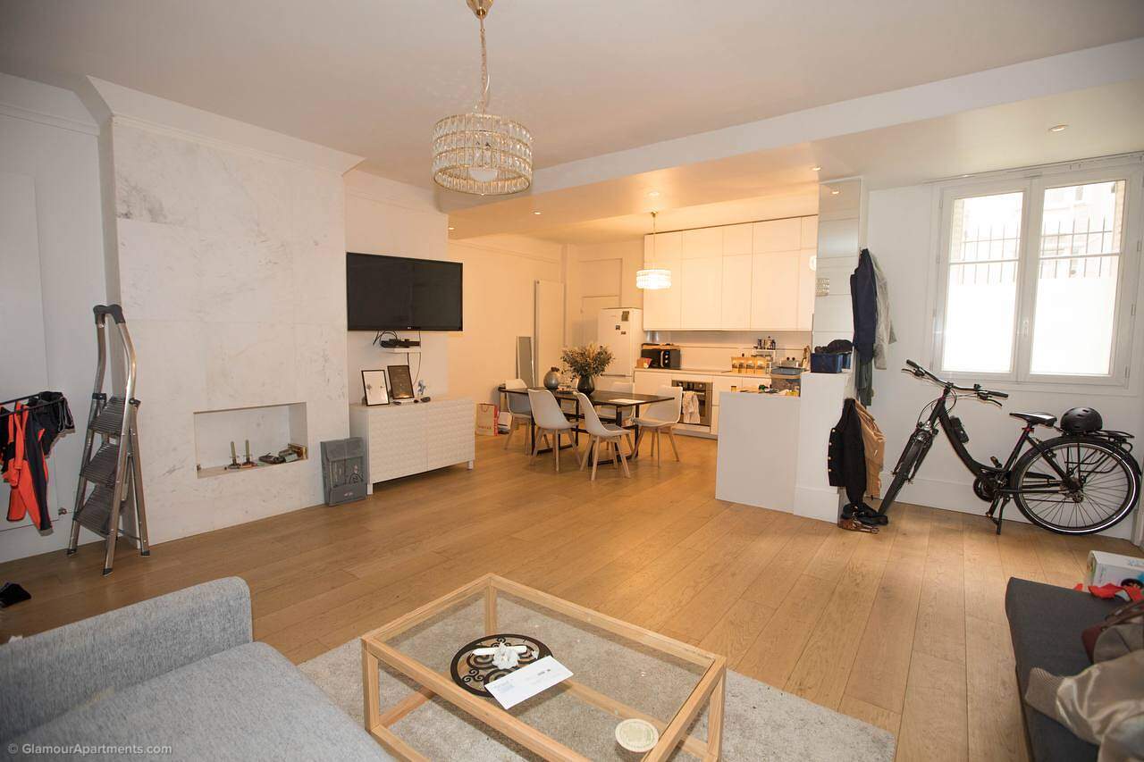 The apartment fits perfectly into the surrounding infrastructure: just a two-minute walk away there is a park, and restaurants, stores and bakeries are within 2-5 minutes walks. International schools and prestigious French educational institutions are also close by, making this neighborhood ideal for families.