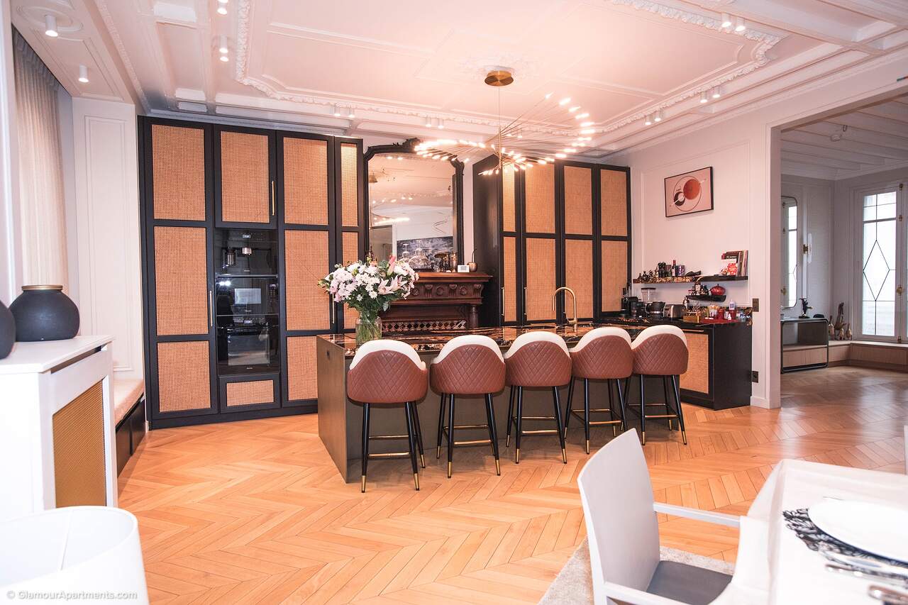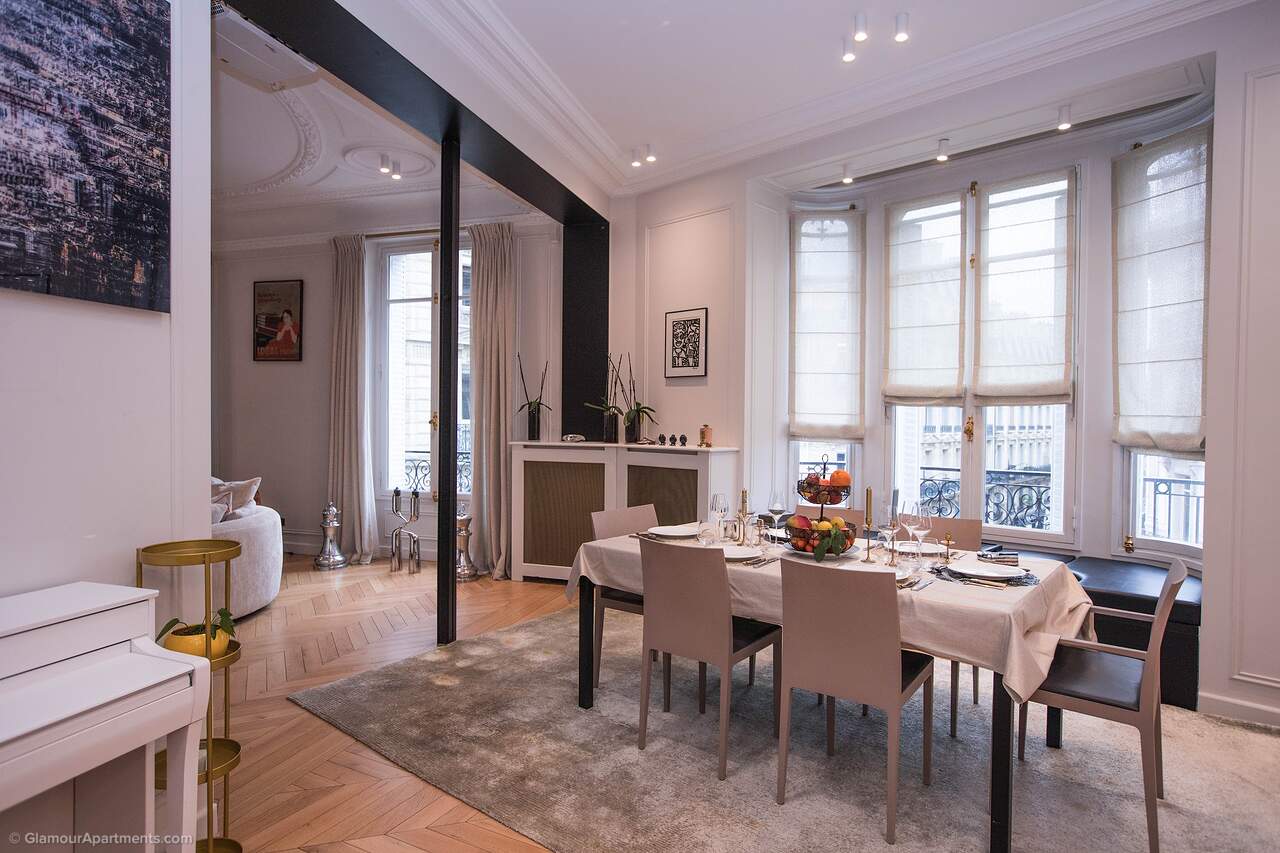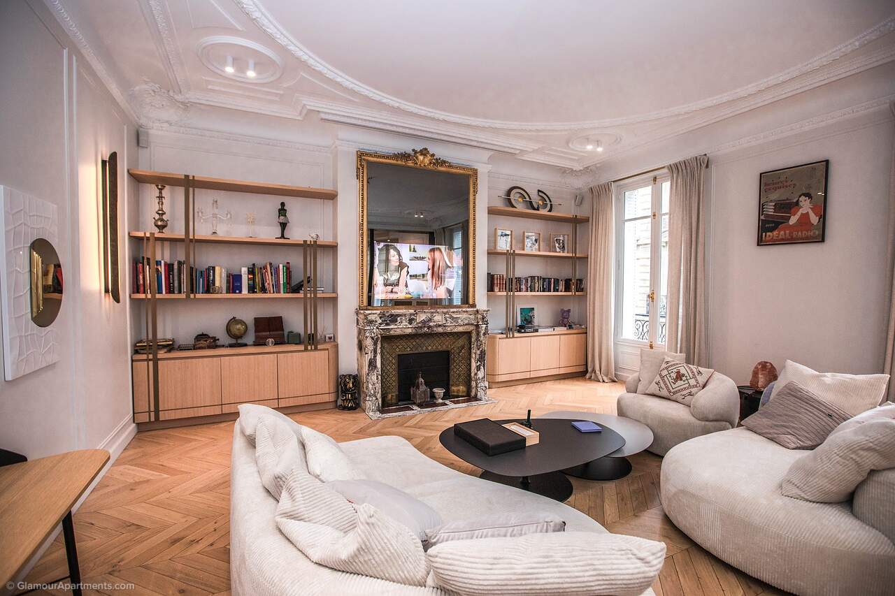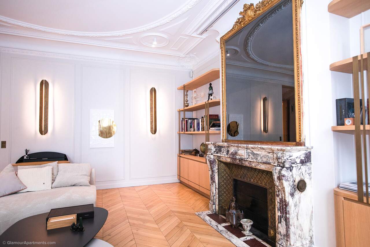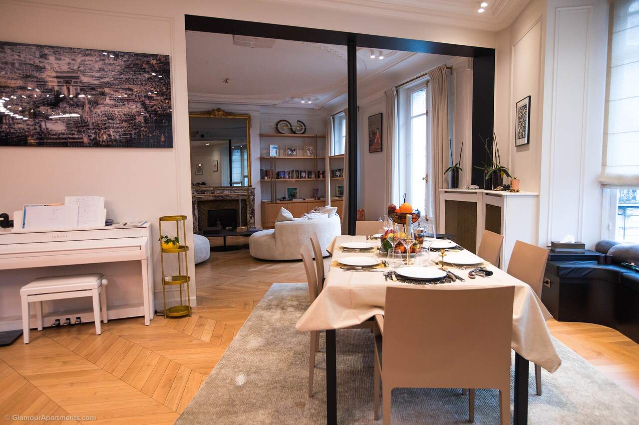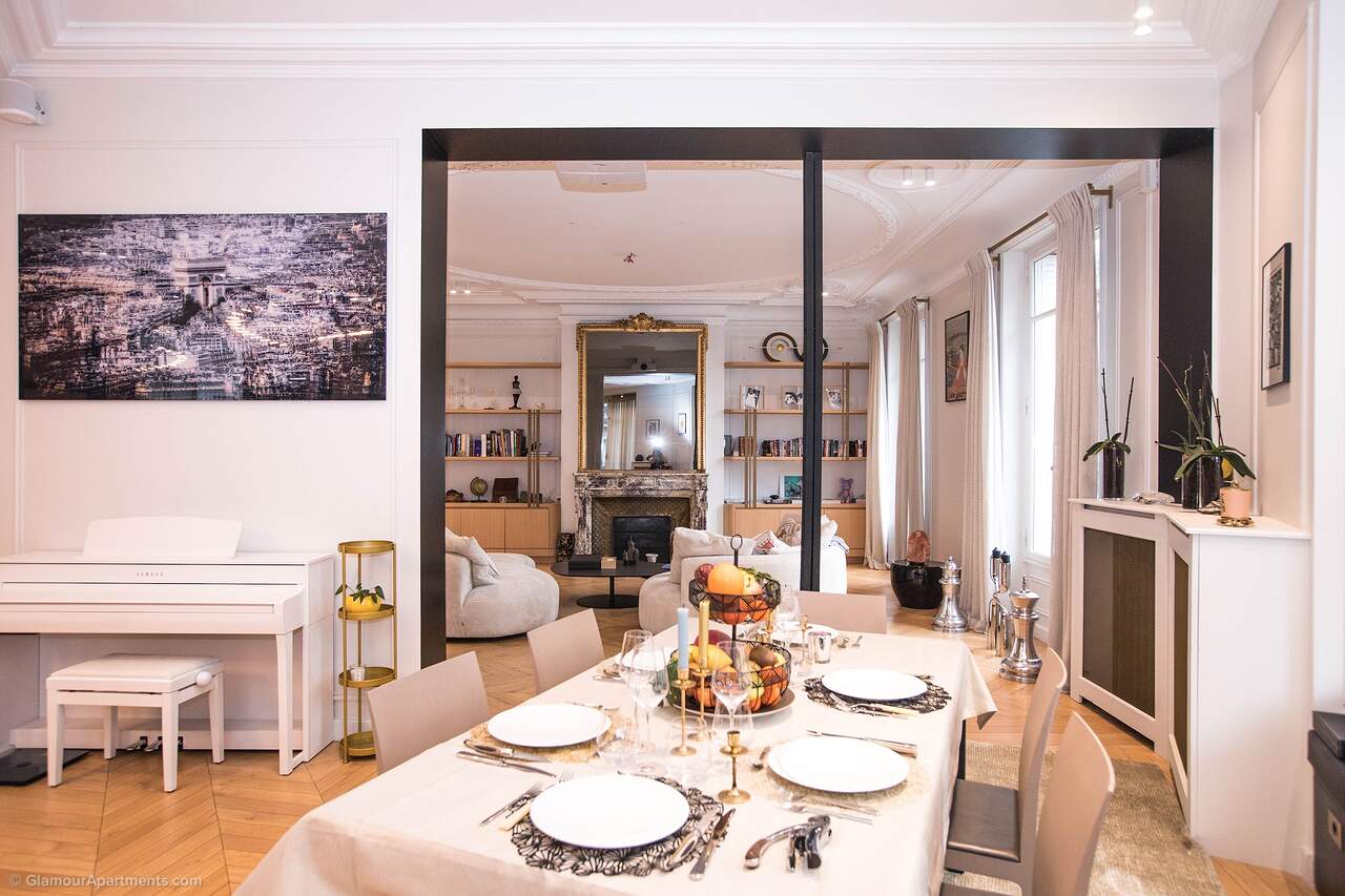 Location. The apartment offers its residents peace and comfort. It is only 400 meters from one of the most beautiful parks in Paris, Parc Monceau. Within walking distance are the Arc de Triomphe, the Champs-Élysées, and the famous Montmartre. All the necessary amenities for a comfortable life are located near the building.