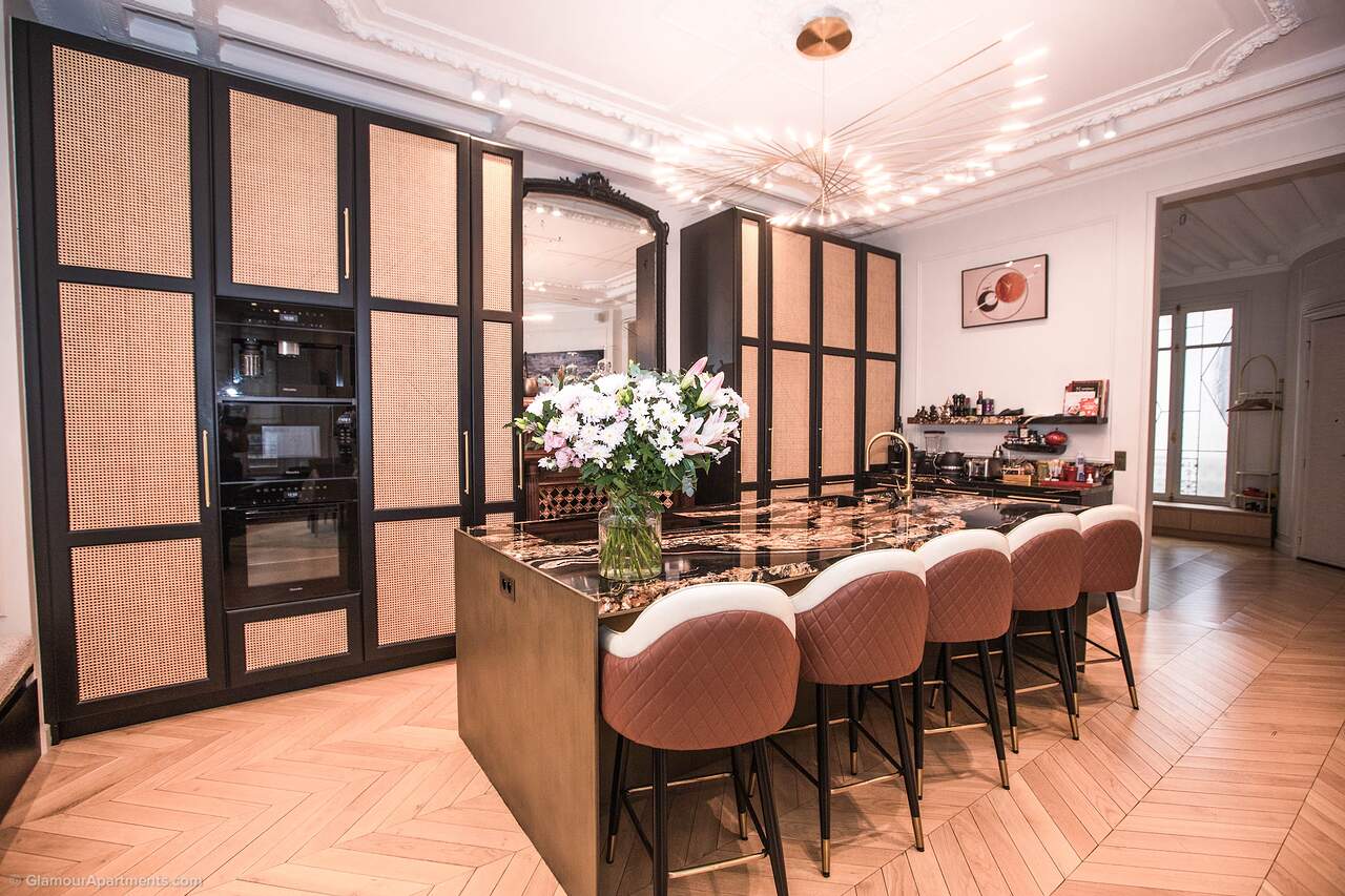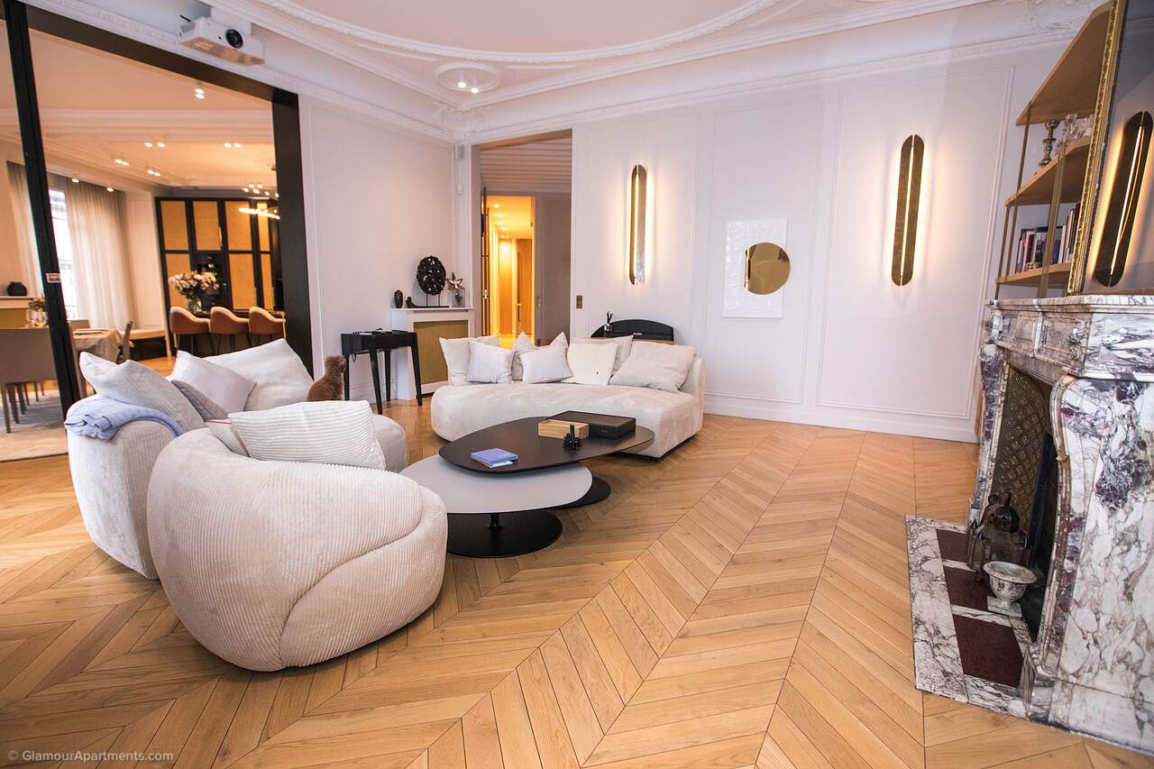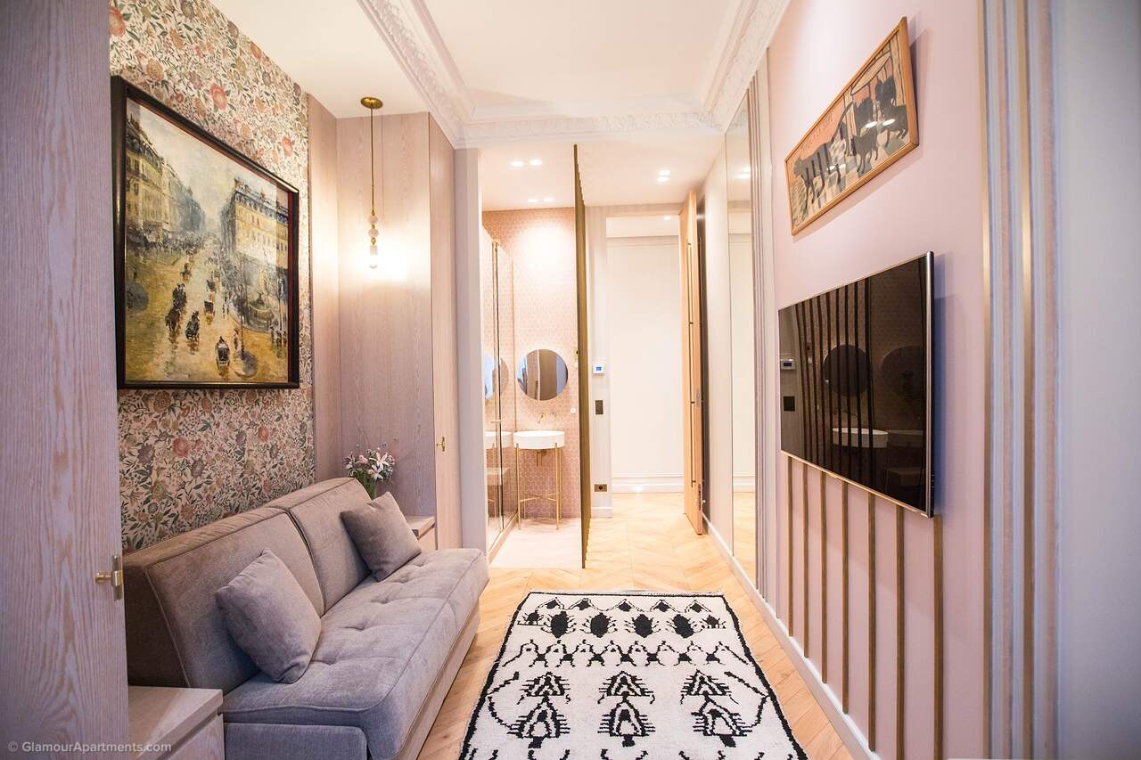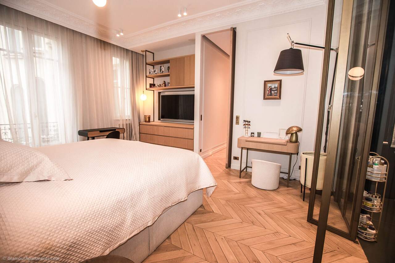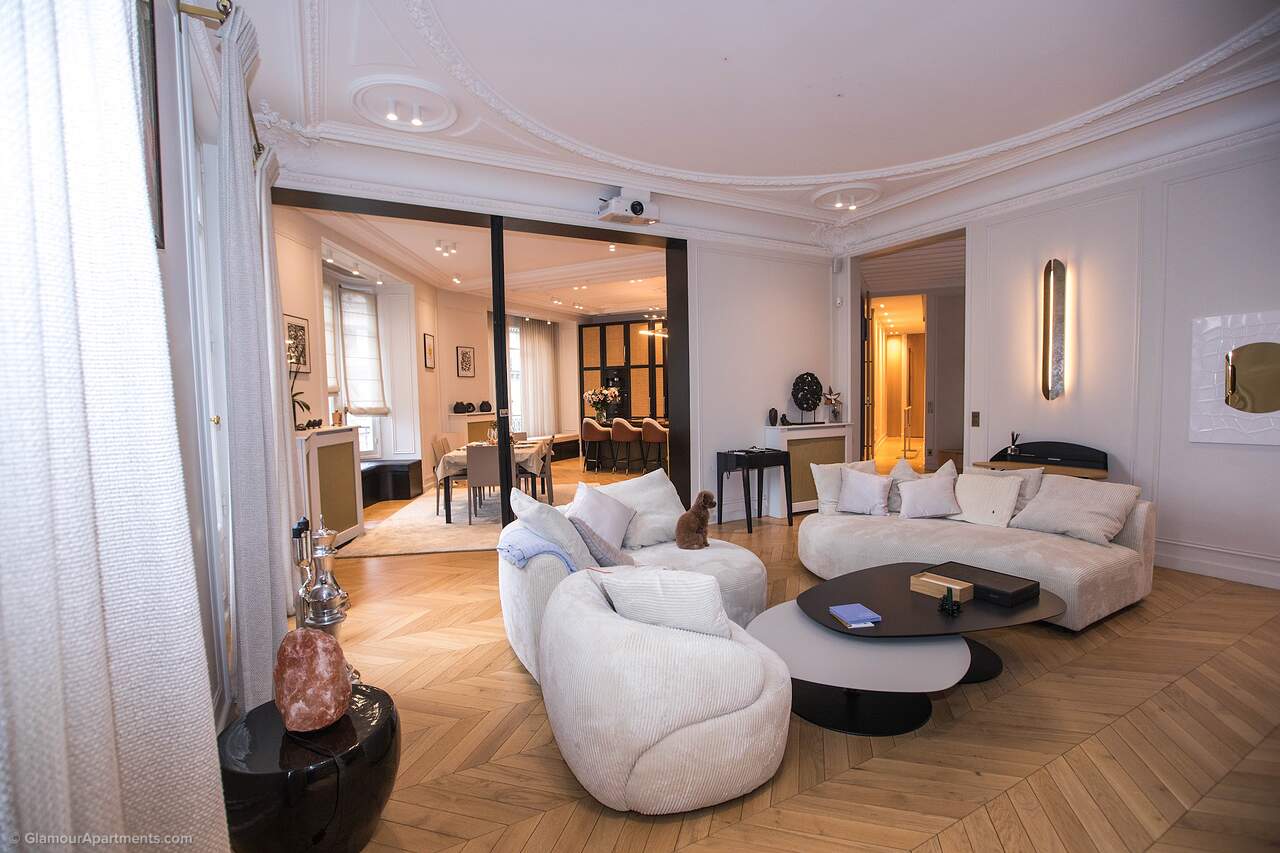 Location. The apartment offers its residents peace and comfort. It is only 400 meters from one of the most beautiful parks in Paris, Parc Monceau. Within walking distance are the Arc de Triomphe, the Champs-Élysées, and the famous Montmartre. All the necessary amenities for a comfortable life are located near the building.