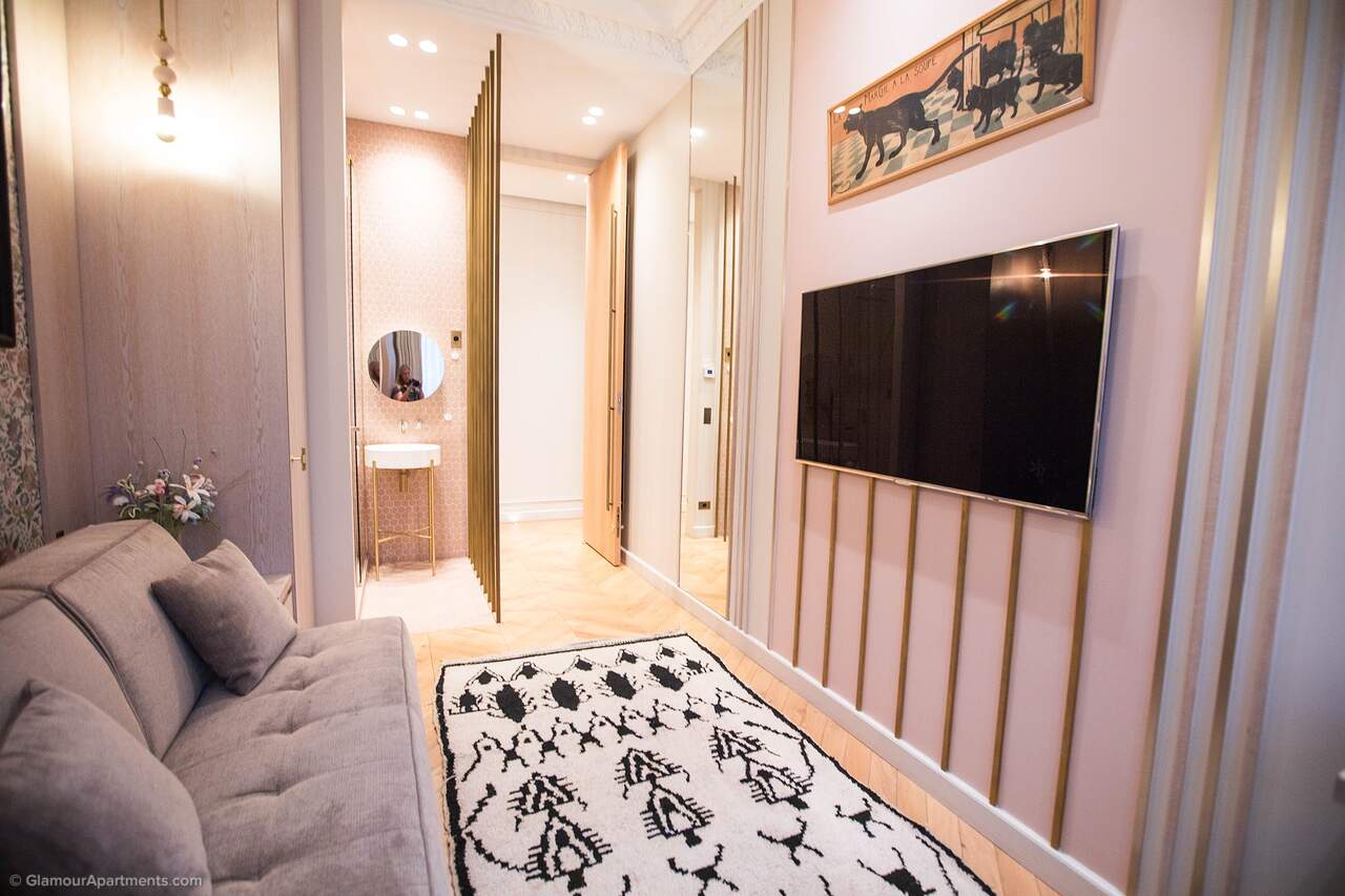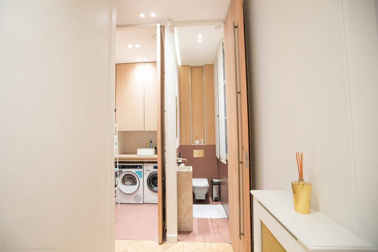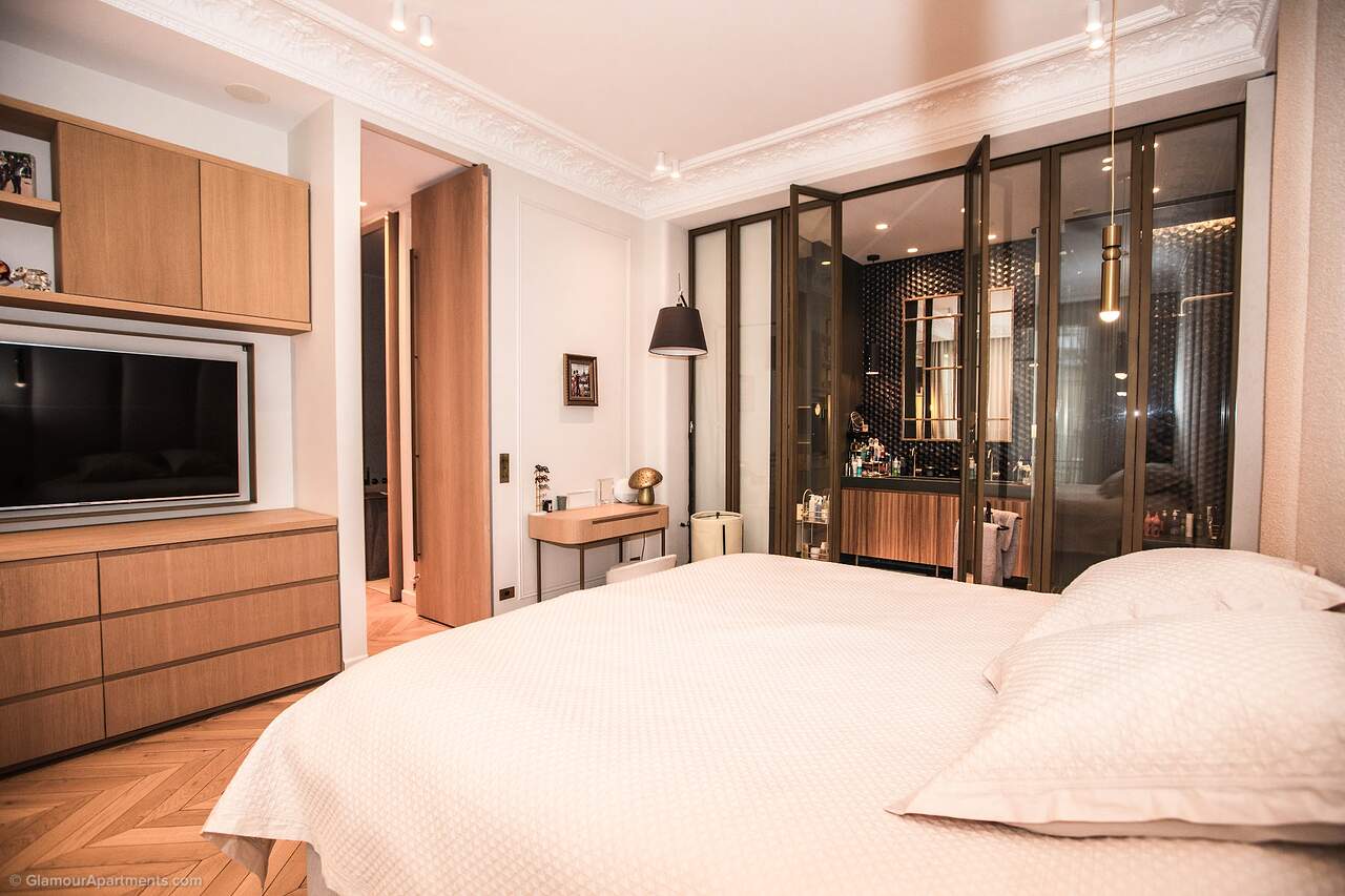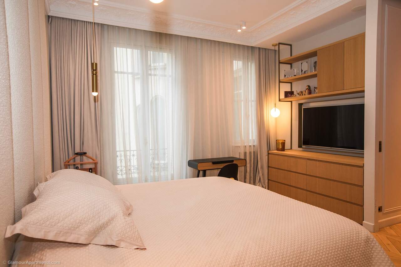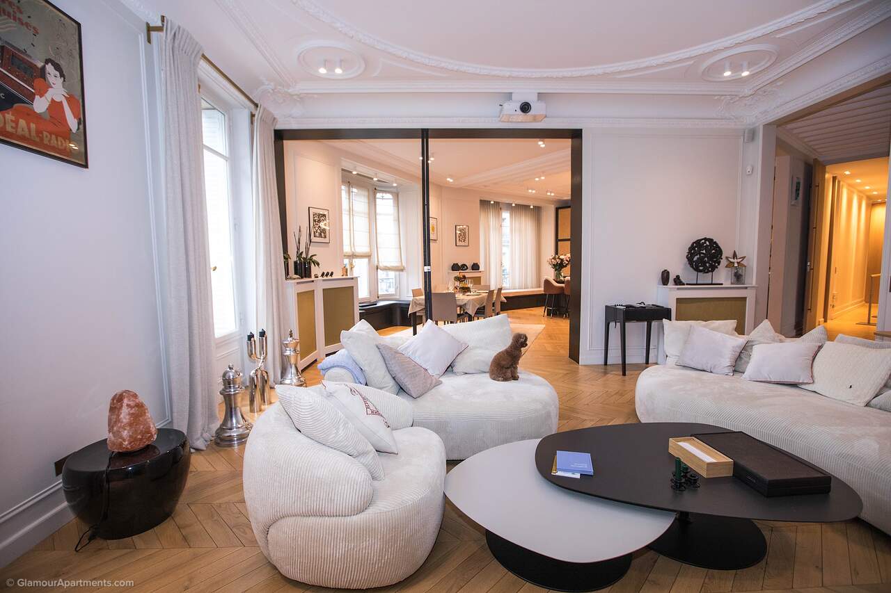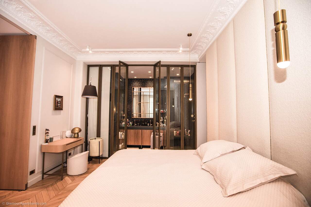Location. The apartment offers its residents peace and comfort. It is only 400 meters from one of the most beautiful parks in Paris, Parc Monceau. Within walking distance are the Arc de Triomphe, the Champs-Élysées, and the famous Montmartre. All the necessary amenities for a comfortable life are located near the building.